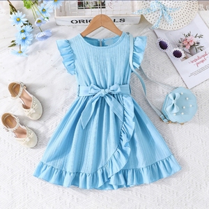 2024 nuevo vestido de moda para niñas, fabricantes transfronterizos de Venta caliente, manga con volantes, ropa para niñas, vestidos para niñas de 6 años